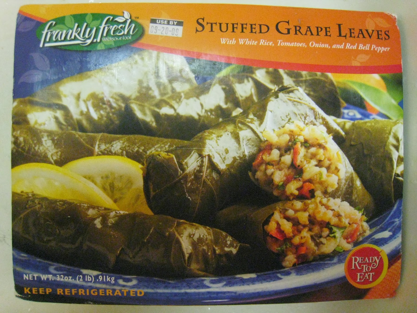 Stuffed grape leaves, aged November 2, 2013 Gross , Mistakes When this past summer (2013) we were cleaning out to move to Texas, we found in the freezer these stuffed grape leaves that had expired in 2009: